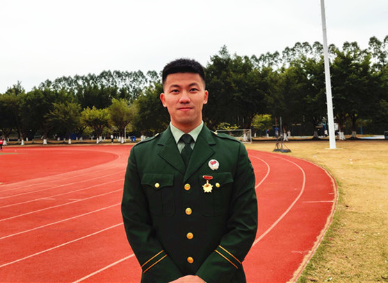 “小時(shí)候,我看過(guò)一部名為《烈火雄心》的電視劇,講的是消防員奮勇?lián)尵壬?,以濃煙考?yàn)斗志、以烈火洗煉人生的故事,那時(shí)我就對(duì)執(zhí)行任務(wù)類(lèi)型的職業(yè)非常向往。再加上男生打小對(duì)飛機(jī)、槍支武器都有一種特殊的感覺(jué),那時(shí)候就在想,有機(jī)會(huì)一定要去部隊(duì)歷練一番試試?!比尾敻嬖V記者,大二那年,他終于夢(mèng)圓軍營(yíng),服役于武警河南總隊(duì)某中隊(duì)?!?個(gè)月的新兵連非常充實(shí),隊(duì)列訓(xùn)練、拉練、長(zhǎng)途行軍......讓我印象深刻的是在行軍過(guò)程中,不管去到什么地方,只要一身軍裝在身,當(dāng)?shù)氐男∨笥讯紩?huì)朝我敬禮,老百姓也特別友善,讓我感到非常自豪,這種軍民魚(yú)水情讓我感覺(jué)非常好?!?/p> 服役期間,因表現(xiàn)突出,任伯聰被評(píng)為“優(yōu)秀義務(wù)兵”,于2019年退出現(xiàn)役。離開(kāi)部隊(duì)后,他重返大學(xué)校園完成學(xué)業(yè),并加入了學(xué)校的國(guó)防教育服務(wù)中心,為學(xué)校的征兵宣傳工作奔走發(fā)聲。在校期間,任伯聰從未忘記自己曾經(jīng)是一名軍人?!拔覉?jiān)持每天長(zhǎng)跑10公里,練習(xí)單杠,也一直有按照之前部隊(duì)的訓(xùn)練標(biāo)準(zhǔn)來(lái)保持鍛煉?!?/p>  左一為任伯聰。