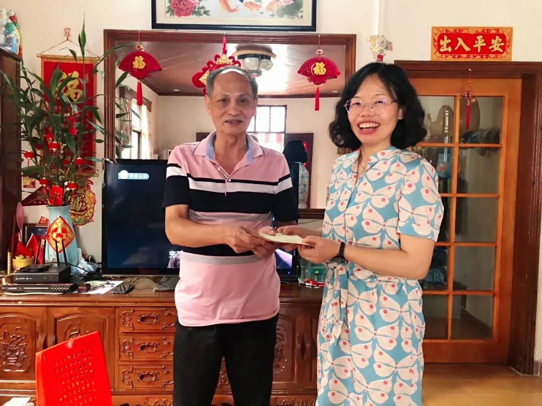 隨后,慰問組來到了歸僑僑胞陳偉業(yè)家中慰問。去年年初,新冠肺炎疫情暴發(fā),抗疫物資緊缺,陳偉業(yè)積極發(fā)動旅居海外的鄉(xiāng)親捐款捐物,多方籌集測溫槍、口罩等防疫物資,迅速寄回國內(nèi),助力五桂山全力抗疫,為五桂山打贏疫情阻擊戰(zhàn)作出了重要貢獻。慰問組對他一直以來關(guān)心支持家鄉(xiāng)的各項建設(shè)表示了衷心感謝。希望他繼續(xù)發(fā)揚愛國愛鄉(xiāng)、情系桑梓的優(yōu)良傳統(tǒng),多提真知灼見、多獻務(wù)實之策,為五桂山經(jīng)濟和各項社會事業(yè)的持續(xù)發(fā)展獻計出力。