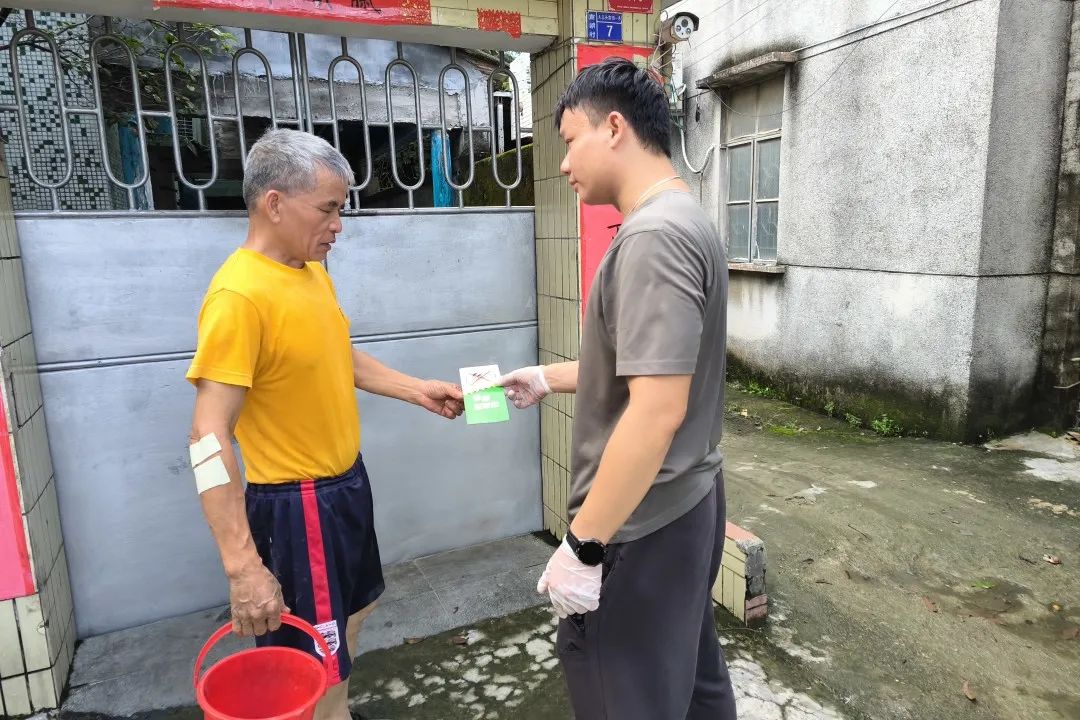 在部隊曾擔(dān)任副班長的他,對防疫工作格外上心,總想著把各項措施落實到位。走進村民家中,他一邊跟村民嘮家常,一邊念叨著防疫要點。為了讓老年村民更容易理解,孫桂濱把 “基孔肯雅熱” 簡稱為 “雅熱”:“不想中‘雅熱’就得防蚊蟲叮咬。沒積水就沒蚊蟲,沒蚊蟲就沒‘雅熱’啦!” 說著就幫村民檢查起家中的積水情況。 在中山南朗街道,像嚴兆雄、孫桂濱這樣的退伍軍人還有許多。他們曾是保家衛(wèi)國的 “最可愛的人”,如今依然是守護家園的 “防疫尖兵”。他們正用軍人的擔(dān)當(dāng)與堅守,為家鄉(xiāng)筑牢一道道健康防線。