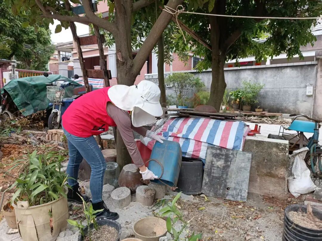 “阿姆,天氣轉(zhuǎn)涼了些但蚊蟲沒少,這盆托里的積水得及時倒掉,房前屋后的雜物要及時清理,不然容易孳生伊蚊呀?!?0月26日,翠亨新區(qū)(南朗街道)華照村志愿者小李的身影出現(xiàn)在村民家中,他一邊幫忙清理庭院積水,一邊遞上防蚊宣傳資料。這個周末,這樣接地氣的入戶宣傳場景,在轄區(qū) 18個村(社區(qū))同步上演。