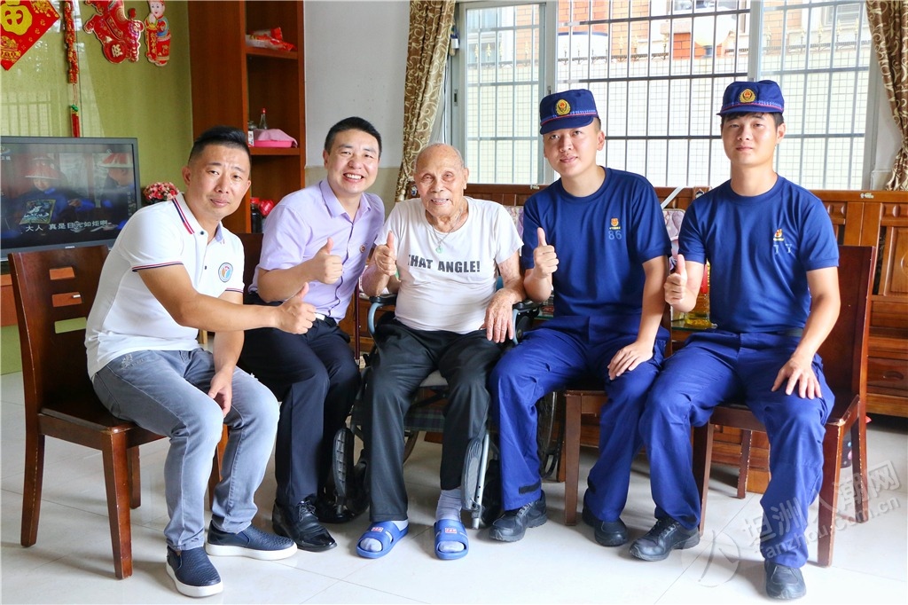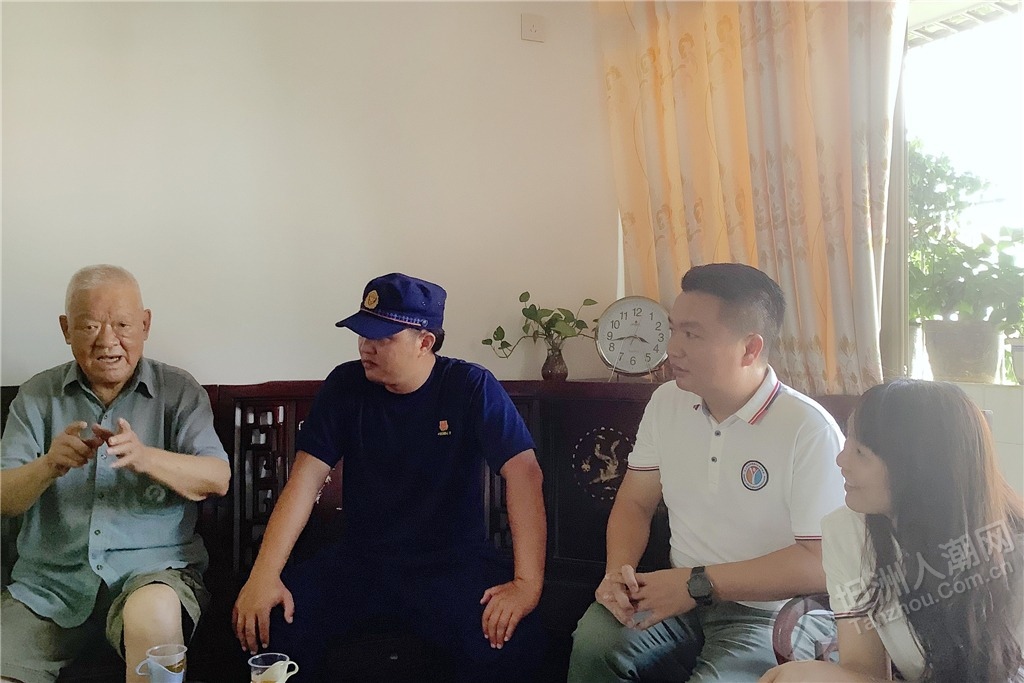 隨后,慰問(wèn)組還邀請(qǐng)參戰(zhàn)老兵鄭金洪走進(jìn)中山市消防救援支隊(duì)坦洲大隊(duì)講述革命故事,給與會(huì)黨員干部和部分基干民兵送上了一堂生動(dòng)、鮮活的紅色教育黨課,讓全體人員感受參戰(zhàn)老兵的精神洗禮。“在一次部隊(duì)作戰(zhàn)時(shí),我和另一名貴州籍的戰(zhàn)友去攻打一個(gè)火力點(diǎn),我們一起在山腳的一塊石頭處掩護(hù),但根據(jù)我以往的作戰(zhàn)經(jīng)驗(yàn),我覺(jué)得這里不安全,于是趕緊對(duì)他說(shuō)不要待在那塊石頭那,也不要站立,趕緊滾到下面的公路去;好在他聽從我的命令后,迅速地做出反應(yīng)。當(dāng)我們到達(dá)安全地方時(shí),長(zhǎng)舒一口氣,一直聽到有子彈嗖嗖嗖地從那塊石頭附近穿梭而過(guò);而那位戰(zhàn)友感慨地跟我說(shuō)‘班長(zhǎng),好在你迅速做出反應(yīng),不然我在那不是受傷就是死了?!编嵔鸷橐杂H身經(jīng)歷聲情并茂地向大家講述了當(dāng)年戰(zhàn)火紛飛的戰(zhàn)斗經(jīng)歷。 ▲慰問(wèn)組一行聆聽烈士遺屬陳北根講述他父親生前與敵斗爭(zhēng)的英雄故事。