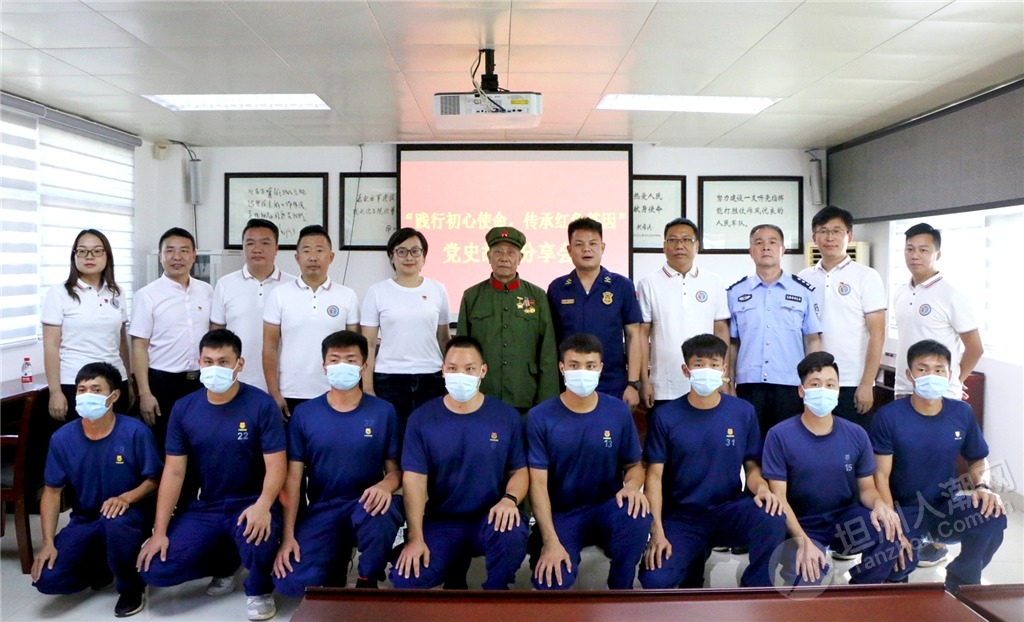 感人至深的英雄事跡,使與會(huì)黨員干部沉浸其中,深刻感受到了每一枚紅色勛章所承載的歷史記憶。中隊(duì)消防員、坦洲鎮(zhèn)民兵海防巡邏排排長(zhǎng)黃俊謙說(shuō):“聆聽了鄭叔生動(dòng)的紅色故事,我備受鼓舞,作為一名基層消防員和民兵骨干,在今后的工作中我要發(fā)揚(yáng)革命前輩的優(yōu)良傳統(tǒng),爭(zhēng)做時(shí)代新人,為坦洲消防救援事業(yè)和海防應(yīng)急搶險(xiǎn)工作貢獻(xiàn)自己的青春和熱血!” ▲與會(huì)人員和參戰(zhàn)老兵鄭金洪合影留念