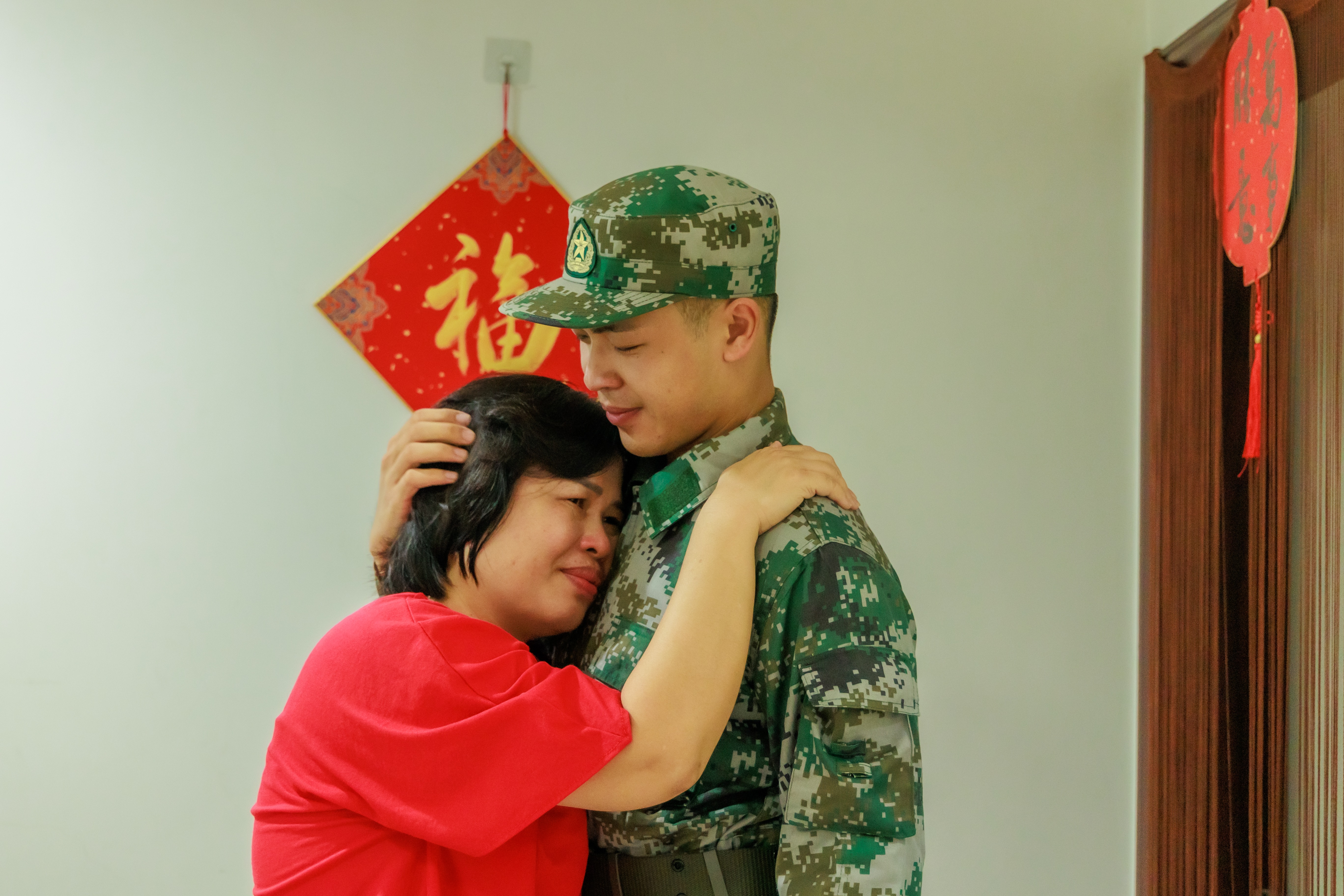 楊尚霖與母親惜別。馬衛(wèi)星 攝 2002年出生的楊尚霖來(lái)自東區(qū)街道東裕社區(qū)。小時(shí)候,楊尚霖就跟著家里人看抗戰(zhàn)、軍旅題材的電視劇。耳濡目染之下,他羨慕軍人擁有鋼鐵般的意志。他的外公是一名退役軍人,老人家最大的愿望便是4個(gè)孫子中有人能夠參軍報(bào)國(guó)。外孫楊尚霖是家中最小的,3個(gè)哥哥因種種原因都遺憾無(wú)緣軍營(yíng)。外公將后輩的從軍夢(mèng)寄托在了楊尚霖身上。