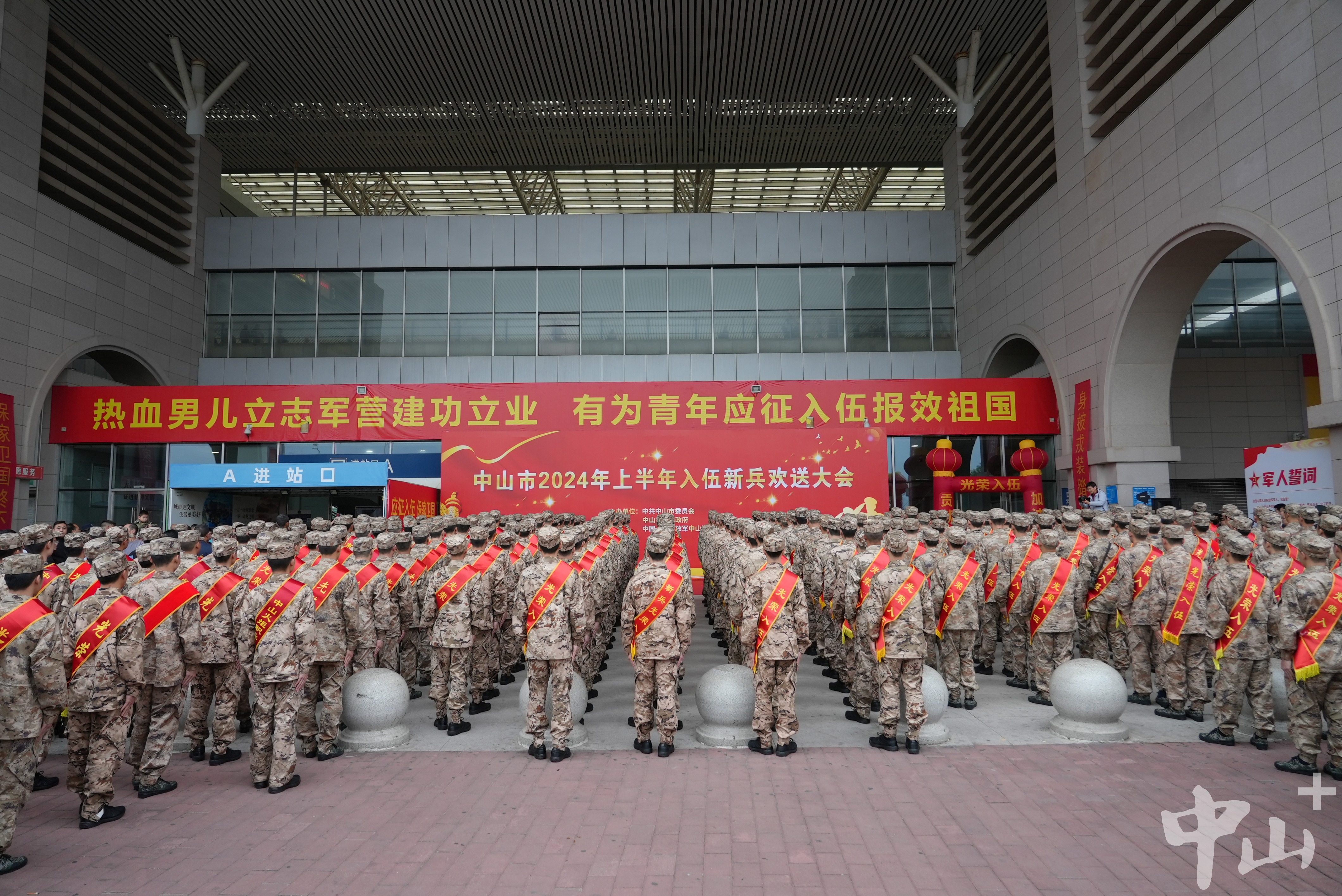 青春獻給國防,熱血報效祖國。 3月16日早上,中山市2024年上半年入伍新兵歡送大會在城軌中山站的進站廣場舉行。300多名適齡青年經過嚴格的體檢和政考,即將邁入軍營。 3月16日早上,中山市2024年上半年入伍新兵歡送大會在城軌中山站的進站廣場舉行。記者 易承樂 攝