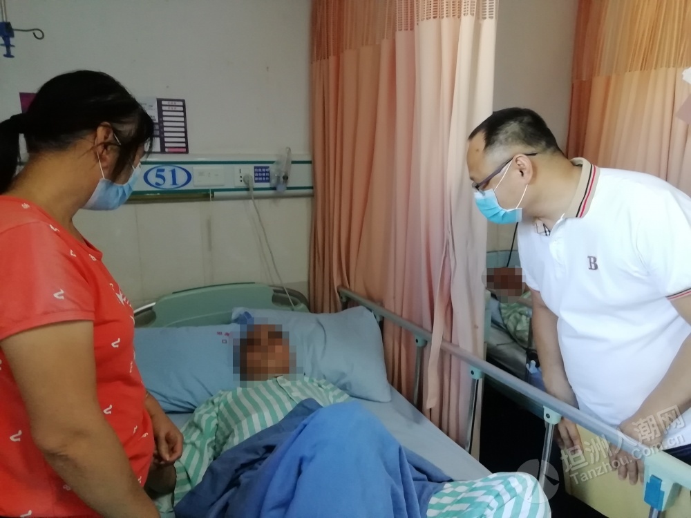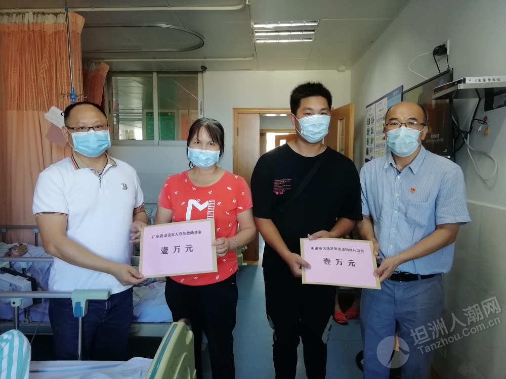 6月18日,中山市、坦洲鎮(zhèn)兩級退役軍人服務中心及坦洲社會事務局相關負責人一行到坦洲醫(yī)院對郭叔進行慰問,告知他申請的應急救助資金已由省退役軍人事務廳撥付到賬,叮囑他要聽從醫(yī)生的囑咐,積極配合康復治療,樹立起戰(zhàn)勝疾病的勇氣和信心。郭叔家人特地制作了一面錦旗送到中山市退役軍人服務中心主任張波手中,由衷表達了對市、鎮(zhèn)、村各級退役軍人服務中心(站)的感激之情。