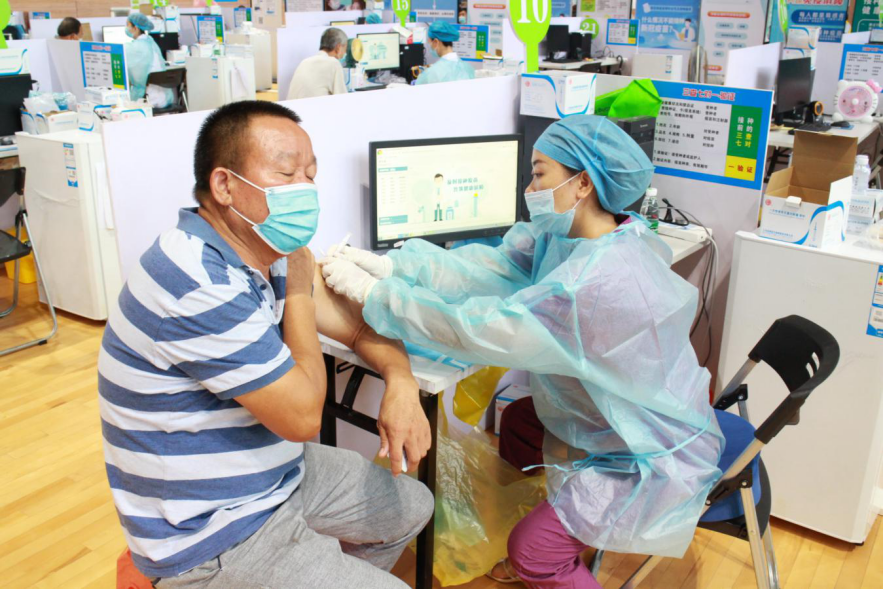 東鳳鎮(zhèn)臨時(shí)接種點(diǎn)現(xiàn)日均接種500劑次,在臨時(shí)接種點(diǎn)現(xiàn)場,等待接種的重點(diǎn)優(yōu)撫對象佩戴好口罩,在工作人員和退役軍人志愿者的指引下有序進(jìn)入接種點(diǎn)。 志愿者們依次指引重點(diǎn)優(yōu)撫對象們?nèi)サ阶稍兊怯泤^(qū)、量血壓區(qū)、接種區(qū)和留觀區(qū),逐個(gè)完成新冠疫苗接種。