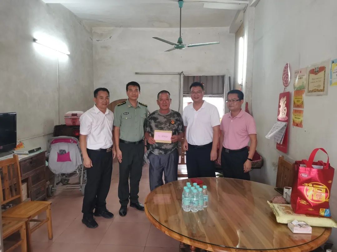 在中國人民解放軍建立94周年來臨之際,為進(jìn)一步弘揚(yáng)“擁軍優(yōu)屬、擁政愛民”的光榮傳統(tǒng),關(guān)心關(guān)愛軍人軍屬,7月30日上午,阜沙鎮(zhèn)黨委副書記、鎮(zhèn)長李健華帶領(lǐng)公共服務(wù)辦、武裝部、退役軍人服務(wù)中心到現(xiàn)役、退役軍人家中開展慰問活動。