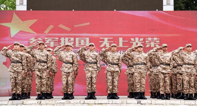3月15日,中山市2023年新兵入伍歡送大會(huì)在中山市文化藝術(shù)中心廣場(chǎng)舉行。300多名新兵身穿迷彩服,胸戴大紅花,即將奔赴軍營(yíng)。中山軍分區(qū)大校司令員、市征兵工作領(lǐng)導(dǎo)小組副組長(zhǎng)李云濤,市委常委、中山軍分區(qū)大校政治委員、市征兵工作領(lǐng)導(dǎo)小組副組長(zhǎng)劉燦瑩,市征兵工作領(lǐng)導(dǎo)小組副組長(zhǎng)、副市長(zhǎng)、市公安局局長(zhǎng)魯罡,市征兵工作領(lǐng)導(dǎo)小組副組長(zhǎng)、市征兵辦主任、軍分區(qū)大校副司令員李健出席送兵儀式。 300多名新兵身穿迷彩服,胸佩大紅花,即將奔赴軍營(yíng)。記者 文波 攝