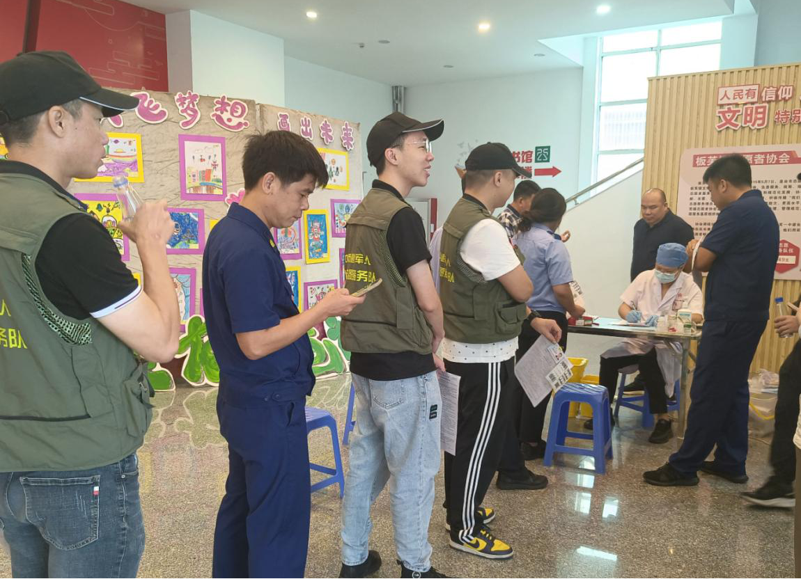 7月3日至4日,板芙鎮(zhèn)連續(xù)兩天在鎮(zhèn)黨群服務(wù)中心開展2023年無償獻(xiàn)血活動。板芙鎮(zhèn)退役軍人服務(wù)中心積極響應(yīng)號召,組織發(fā)動30余名退役軍人紅旗志愿服務(wù)隊(duì)隊(duì)員參與獻(xiàn)血8000毫升,以實(shí)際行動傳遞希望,奉獻(xiàn)愛心。  板芙鎮(zhèn)退役軍人紅旗志愿服務(wù)隊(duì)隊(duì)員排隊(duì)等候無償獻(xiàn)血。