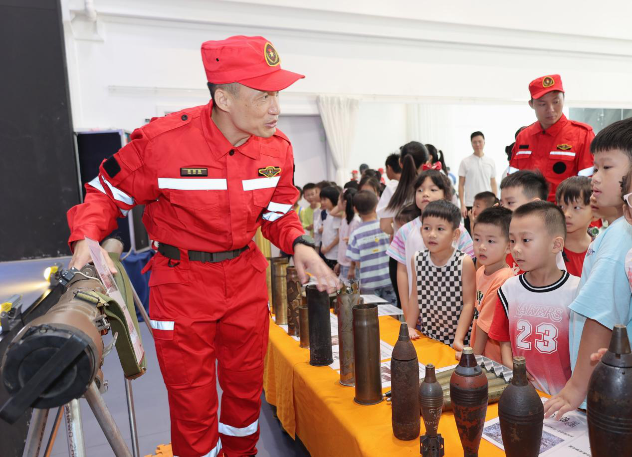 7月24日上午,中山市擁軍支前紅旗服務(wù)隊(duì)在南區(qū)街道環(huán)城社區(qū)暑期公益夏令營(yíng)開營(yíng)儀式上開展安全教育及國(guó)防教育,現(xiàn)場(chǎng)共吸引70余名社區(qū)兒童、家長(zhǎng)以及志愿者參與。  暑期“安全第一課”。