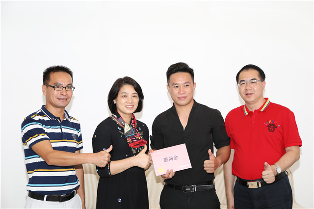 7月6日上午,橫欄鎮(zhèn)黨委書(shū)記馮金怡在橫欄鎮(zhèn)政府黨委樓接見(jiàn)了這名英雄,并將見(jiàn)義勇為的慰問(wèn)金親自送到他手上。“你救下的不僅僅是一個(gè)孩子,更是一個(gè)家庭,你給整個(gè)社會(huì)帶來(lái)了滿(mǎn)滿(mǎn)正能量,向你致敬?!蔽<标P(guān)頭見(jiàn)大義,馮金怡對(duì)賈合強(qiáng)的行為給予了肯定,并表示這是社會(huì)精神文明的體現(xiàn),為他義不容辭的救人行為點(diǎn)贊。 “我上去以后發(fā)現(xiàn)這孩子很懂事,他才3歲,但是他一直在安慰媽媽不要哭。”回憶起當(dāng)時(shí)的驚險(xiǎn)場(chǎng)景,賈合強(qiáng)首先想到的還是孩子,“當(dāng)?shù)皖^看到樓下有群眾自發(fā)高舉床褥保護(hù)我的安全,自己也很感動(dòng)。另外,我還要感謝消防員,看到他們來(lái)了以后,心里頓時(shí)覺(jué)得安定下來(lái)?!辟Z合強(qiáng)謙遜說(shuō)道,這是一場(chǎng)全社會(huì)的合力救援,大家的齊心協(xié)力,給了他力量。