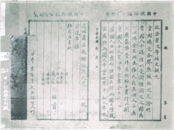 孫中山回國(guó)后致梅屋莊吉的感謝函