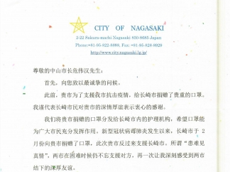 長崎市市長田上富久致中山市感謝信