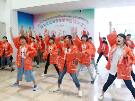 長崎青少年在歡迎儀式上表演舞蹈