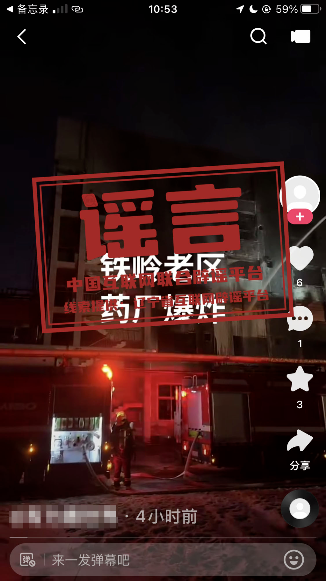 真相:近日,一網(wǎng)民在短視頻平臺發(fā)布信息稱“鐵嶺市銀州區(qū)某藥廠發(fā)生爆炸”,引發(fā)關注。經(jīng)遼寧省鐵嶺市公安局新城分局調查核實,某工廠當日下午一車間起火,相關部門迅速到場妥善處置,未發(fā)生爆炸。網(wǎng)民常某在未經(jīng)核實的情況下,將不實信息發(fā)布至網(wǎng)絡平臺,造成不良社會影響。目前,公安機關已依法對常某予以行政處罰。(來源:@平安鐵嶺)