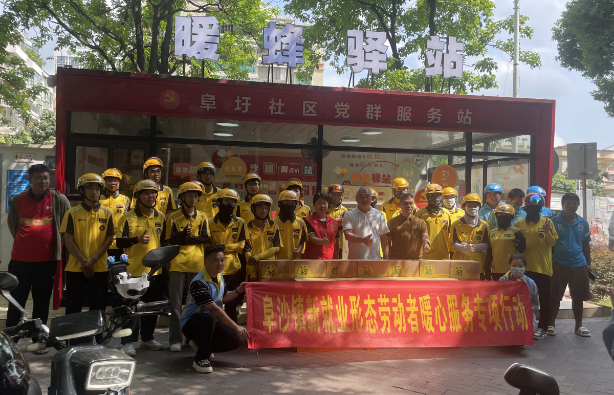 為進(jìn)一步提升新業(yè)態(tài)群體識毒、防毒意識與能力,8月13日上午,阜沙鎮(zhèn)平安法治辦聯(lián)合阜沙鎮(zhèn)總工會在阜圩社區(qū)暖蜂驛站開展新業(yè)態(tài)勞動者暖心服務(wù)暨禁毒宣傳進(jìn)萬家活動。鎮(zhèn)人大主席梁元輝出席了本次活動,活動共為60余名美團(tuán)、餓了么、京東騎手送上防暑物資與禁毒知識“雙料禮包”,并吸引了眾多居民群眾駐足觀看參與。